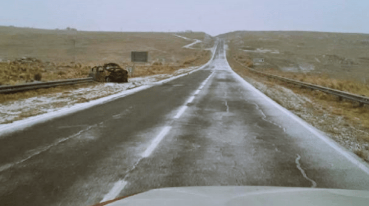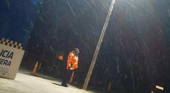 «En la ruta 34 a la altura del km 53 del paraje El Cóndor se encuentra una copiosa nevada y en los demás kilómetros restantes una aguanieve tenue», informó el comisario José Romera de la departamental San Alberto.