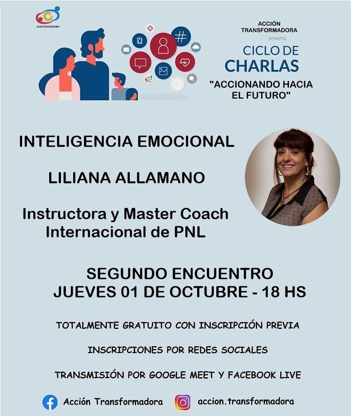 En esta ocasión, la segunda charla estará en manos de Liliana Allamano, quien disertará sobre “Inteligencia Emocional”.