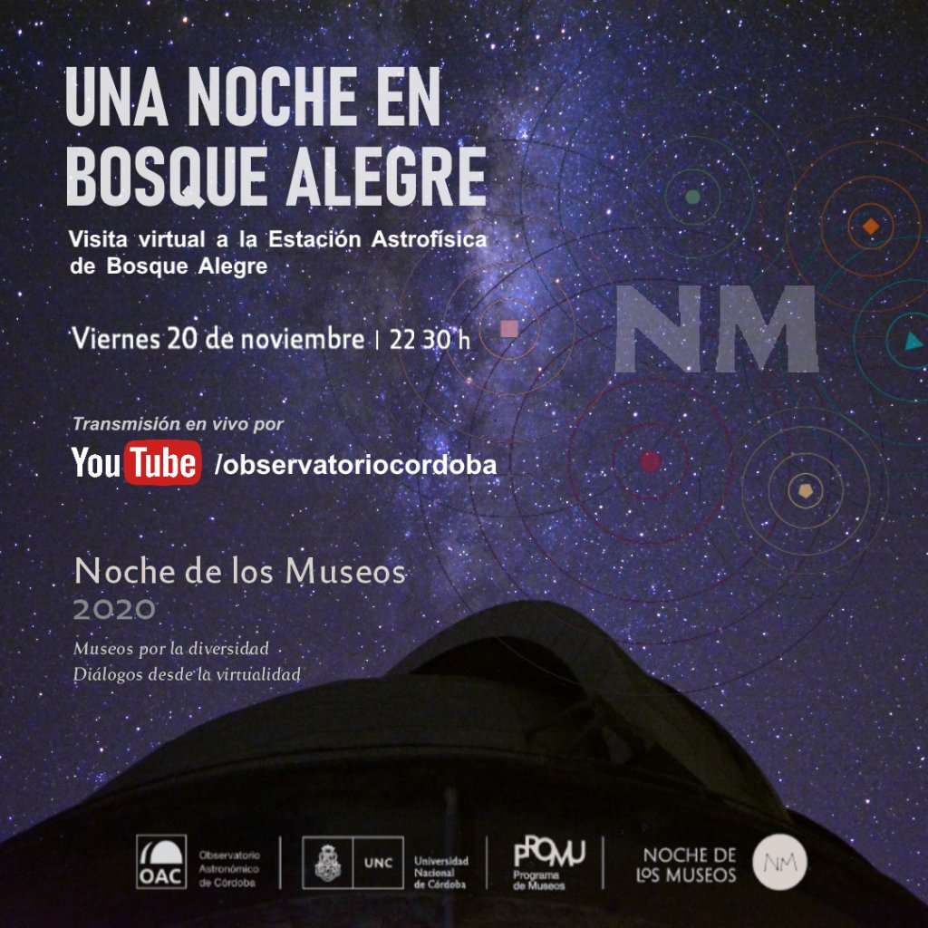Este viernes 20, a partir de las 22:30 hs, se realizará una minivisita virtual en vivo, al telescopio ubicado en el Observatorio de Bosque Alegre, en el marco de la Noche de los Museos.