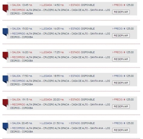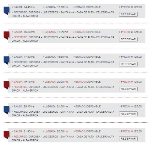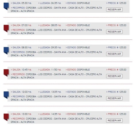 El resto de los horarios los podés consultar en la página web de la empresa: horarios.sierrasdecalamuchita.com/Horarios.aspx