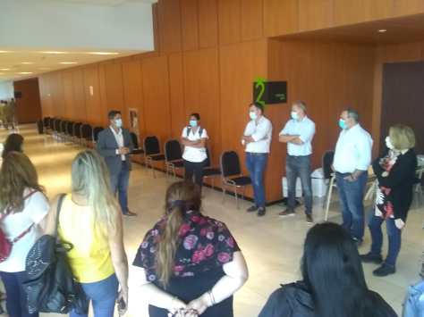 El Secretario de Salud, Desarrollo y Equidad, Mariano Agazzi y el Director de Políticas Sanitarias, Martín Cugno, acompañados por personal de enfermería municipal, visitaron este miércoles el Centro de Convenciones Córdoba, Brigadier General Juan Bautista Bustos.