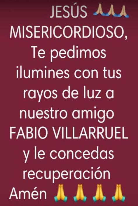 Familiares, amigos y conocidos en general, de Fabio Villarruel, piden por su pronta recuperación, a razón de que el mismo se encuentra internado en grave estado en el Sanatorio Allende de Córdoba Capital, producto de un traumatismo de cráneo.