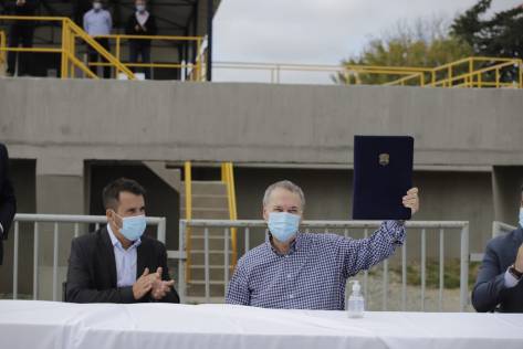 El gobernador Juan Schiaretti; junto al ministro de Servicios Públicos, Fabián López; y al intendente local, Marcos Torres; dejó habilitado este miércoles el acueducto que permite incrementar el suministro a Alta Gracia, y abastecer a Valle Alegre (Falda del Carmen) y la localidad Villa Del Prado, en el departamento Santa María.