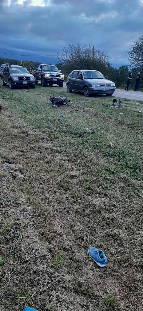 Allí, un automóvil Chevrolet Corsa conducido por un hombre de 78 años de edad, se adelantó en una zona de curva y de doble línea amarilla, colisionando luego con una motocicleta Corven 110cc, conducida por un joven de 21 años, quien lo hacía acompañado de otro joven de 26 años.