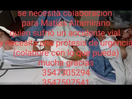 Se trata de Matías Altamirano, de 26 años de edad, quien hace una semana atrás sufrió un accidente en Villas Ciudad de América. El joven es padre de dos niñas y apela a la solidaridad de la gente para afrontar diversos gastos.