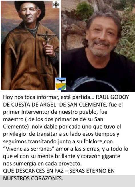 Tras conocerse la triste noticia del fallecimiento del maestro Raúl Agustín Godoy, todo el ámbito de la danza folclórica, del tradicionalismo y de la docencia, dieron su pesar hacia quien marcó, y aún lo seguía haciendo, la vida de tantísimas personas.