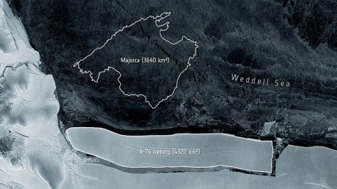 Las imágenes del inmenso bloque de hielo A-76 fueron tomadas por el satélite Sentinel-1, que pertenece al programa europeo de observación de la Tierra Copernicus.