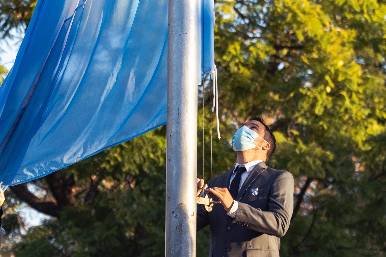 Por razones de público conocimiento en el marco de las restricciones por la pandemia de Covid-19, no se pudo realizar el tradicional desfile de instituciones educativas y fuerzas vivas por las calles de nuestra ciudad.