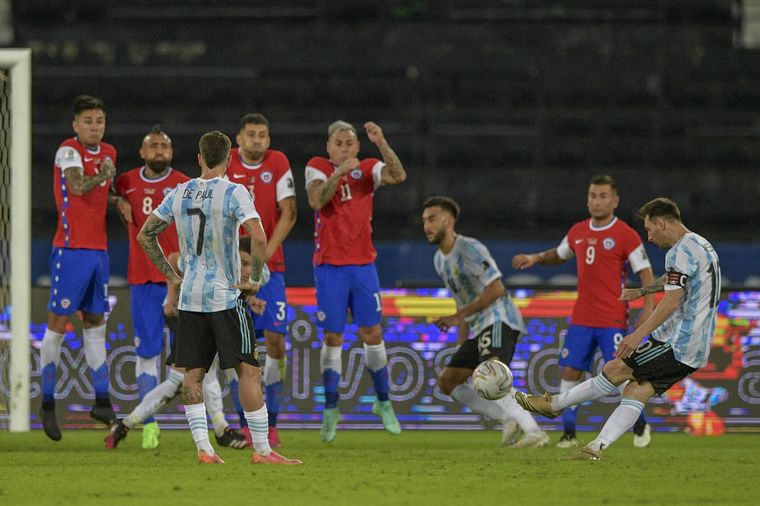 El despliegue y aporte de Lo Celso fue fundamental para que el juego no recaiga siempre en Messi, pero fue precisamente el capitán el que abrió la cuenta con un tiro libre espectacular desde afuera del área, que Bravo esta vez no pudo sacar.