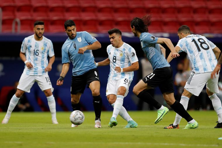 Argentina se paró bien desde el inicio y se mostró comprometida generando vértigo en el campo rival. Uruguay, por su parte, no encontraba claridad en el juego y no pudo contra el arquero argentino Emiliano “Dibu” Martínez.