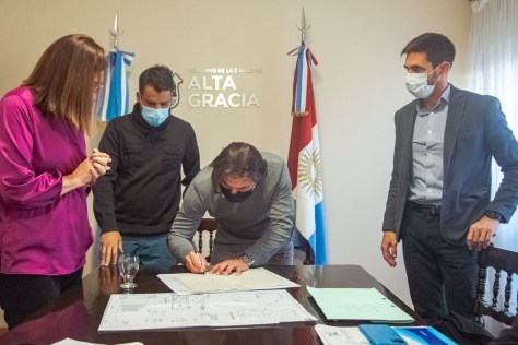 En la mañana de este martes 22 de junio, el Intendente de Alta Gracia, Marcos Torres, acompañado por el Subsecretario de Industria, Comercio e Ingresos Públicos, Mauro Proto, firmaron la escritura de venta del lote 116 adquirido por el Grupo Sarmiento, en presencia de la Escribana Rossana Rava y de la Oficial Mayor, Eugenia Amiune.
