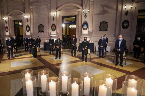 El Presidente encabezó este domingo un acto en memoria a los más de 92 mil fallecidos por Covid-19. Participaron representantes de todos los credos, trabajadores esenciales y gobernadores.