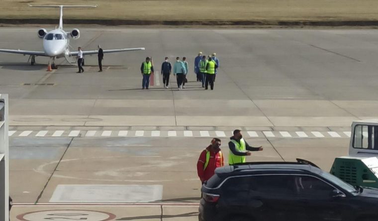 El avión privado de Messi, que partió este mediodía desde el aeropuerto de Ezeiza, aterrizó a las 13.20 en el Islas Malvinas de Rosario. El capitán de la Selección bajó de la nave ataviado con un conjunto deportivo azul, un barbijo blanco y una mochila negra.