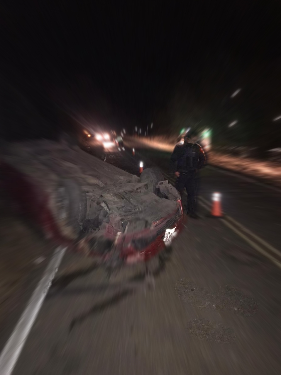 Un Toyota Corolla, por causas que se tratan de establecer, impactó contra la ladera de la montaña y volcó sobre la carpeta asfáltica.