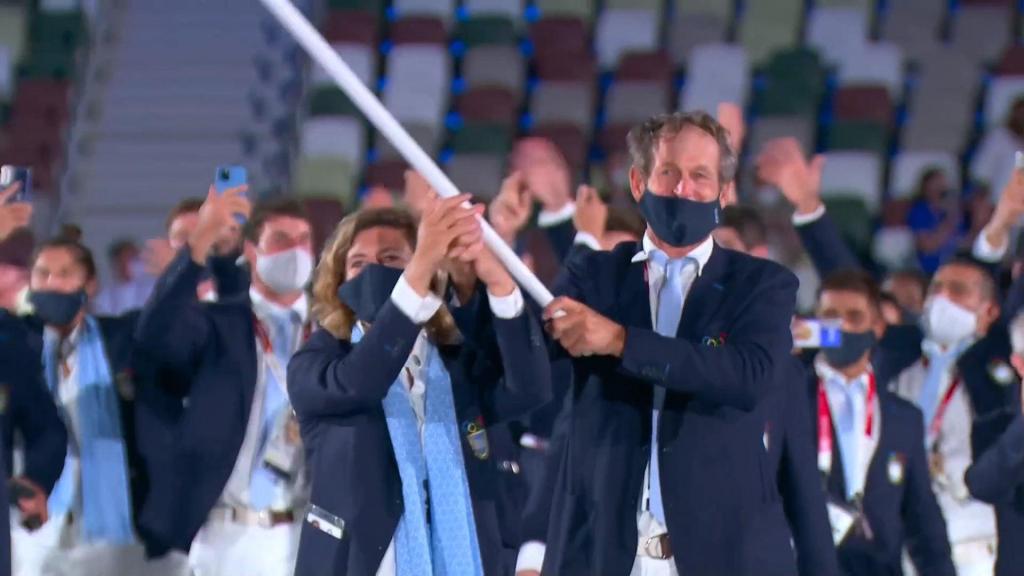 La delegación argentina, encabezada por los abanderados regatistas Santiago Lange y Cecilia Carranza Saroli quienes ganaron la presea dorada en Vela en Rio de Janiero 2016, desfiló este viernes con entusiasmo en el Estadio Nacional de Tokio en la ceremonia Inaugural de los Juegos Olímpicos, evento que se realiza sin público para mitigar los efectos de la pandemia de coronavirus.