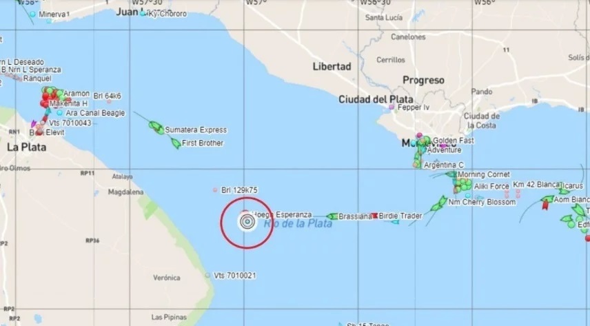 Se trató del buque gasero Hoegh Esperanza, con bandera de Noruega, un carguero de gas metano que después de más de 24 horas fue removido en la zona del Codillo en el canal Punta Indio, un canal artificial dragado en el río de la Plata, un punto geográfico clave para el comercio exterior. Mientras tanto, las embarcaciones de entrada y salida amontonaron frente a Buenos Aires, a la espera de la resolución del bloqueo.
