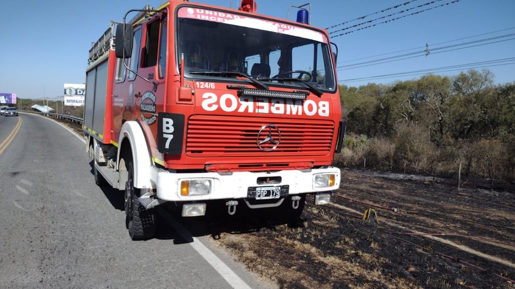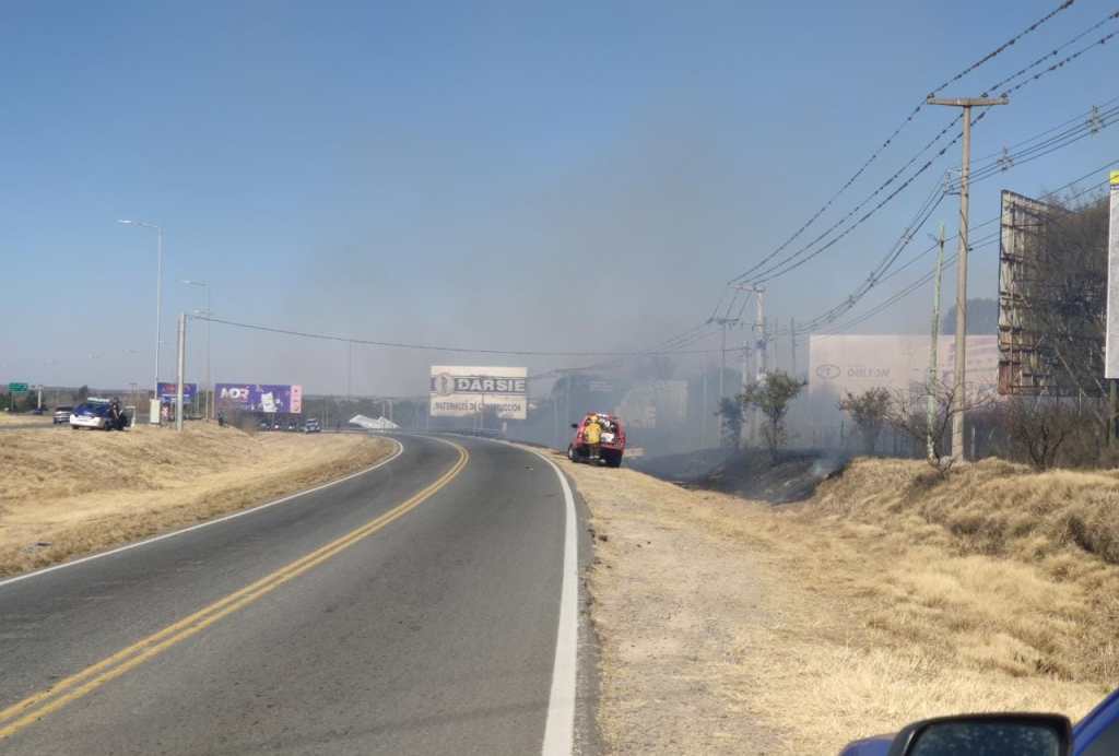 Bomberos voluntarios de Malagueño y Carlos Paz sofocaron un incendio que ocurrió esta tarde en la banquina de la colectora Ruta 20, a la altura del kilómetro 1 de la autopista Córdoba-Carlos Paz.