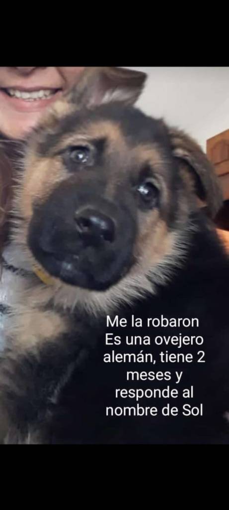 El animal, de raza Ovejero Alemán, tiene 2 meses de edad, llevaba puesto un collar de color amarillo, responde al nombre de Sol, estando bajo tratamiento antibiótico, según expresó Malvina, su dueña.