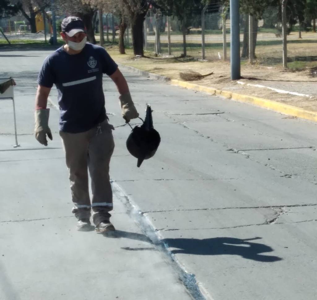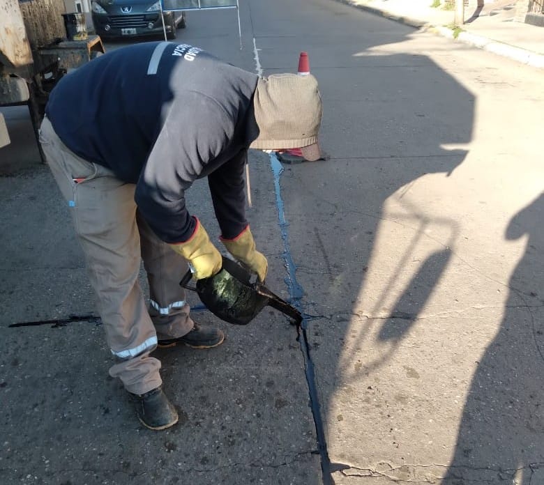 Además del importante Plan de Bacheo, en esta oportunidad el personal de la Dirección de Obras Públicas se encuentra trabajando en el tomado de juntas con alquitrán en calles Quintana, Dalinger, Bv. Alfonsín y Arzobispo Castellanos.