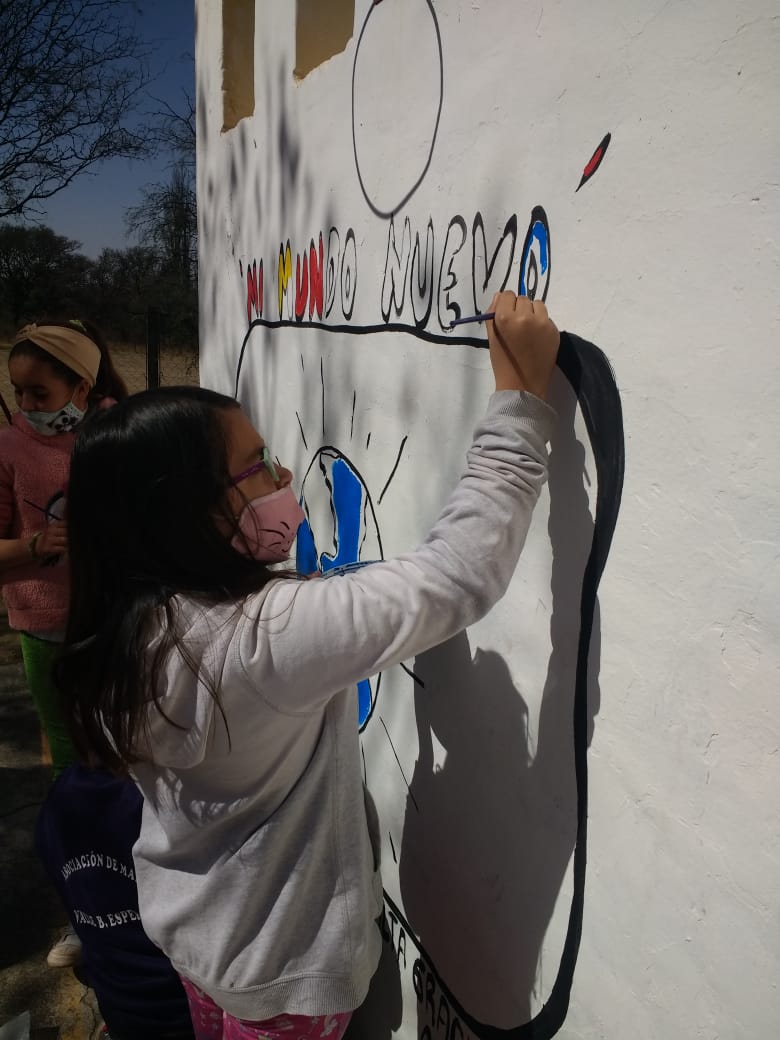 En la primera jornada, llevada a cabo en la escuela “Asociación de Mayo” de Valle Buena Esperanza, los niños y niñas pudieron reflexionar sobre sus derechos y los ODS, para luego realizar propuestas que posteriormente plasmaron en un mural colectivo que refleja el trabajo realizado.