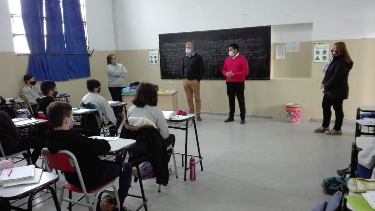 En su recorrido, los funcionarios mantuvieron reuniones con equipos directivos, preceptores y docentes, para luego compartir un encuentro con el estudiantado donde pudieron responder a diversas dudas de los alumnos y alumnas con respecto a la vacunación contra el Covid-19.