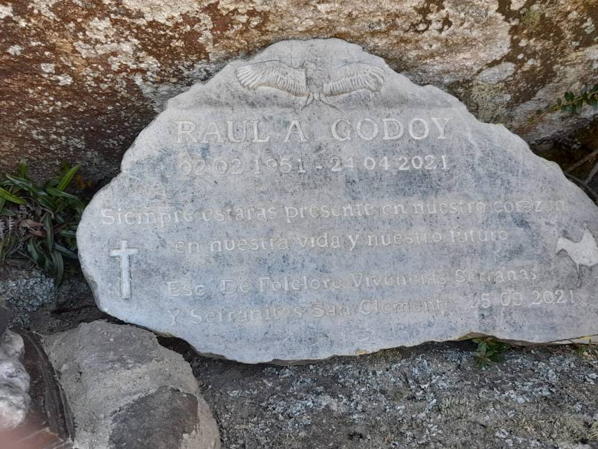 Una vez en el límite con Pampa de Achala y divisando la vieja casa de sus padres, es que las cenizas fueron esparcidas. Por otra parte, desde la Academia Vivencias Serranas en una especie de «gruta» donde se encuentra una imagen del Cura Brochero y una cruz de tabaquillo, se dejó instalada una placa en la que se destaca un cóndor andino y brinda homenaje con unas sencillas palabras, a quien marcó la vida de tantísimas personas.