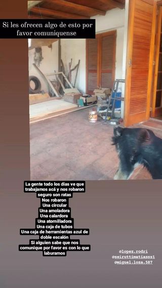Las herramientas robadas se encontraban en la galería de la casa, siendo la mayor sorpresa, que a los perros del lugar no se los escuchó ladrar, presumiendo que el robo debió haber ocurrido durante la madrugada
