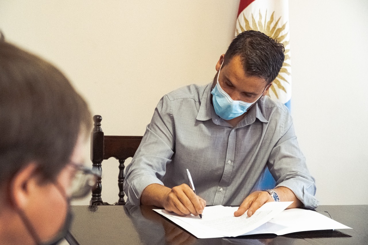 El Intendente de Alta Gracia, Marcos Torres, acompañado por la Vice intendenta Cristina Roca, el Secretario de Economía y Finanzas, Carlos Di Leo, el Subsecretario de Comercio, Industria y Servicios Públicos, Mauro Proto y el Coordinador de Catastro y Obras Privadas, Diego Forte firmó un convenio de regularización de construcciones con autoridades y representantes del Colegio de Arquitectos, Colegio de Ingenieros Civiles, Colegio de Maestros Mayores de obra y de Técnicos constructores de la provincia.