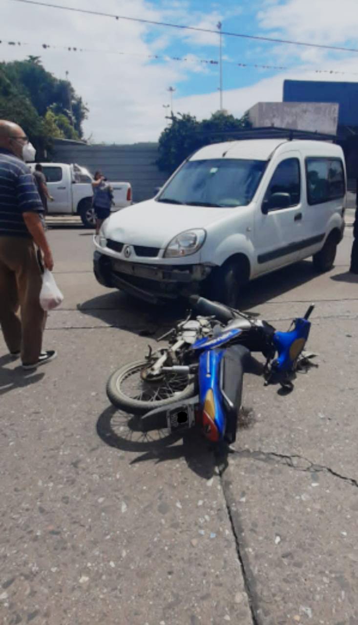 El siniestro vial ocurrió en horas del mediodía, en el cruce con calle Deán Funes en Barrio Pellegrini de Alta Gracia; donde una motocicleta Corven Mirage colisionó con una Renault Kangoo.