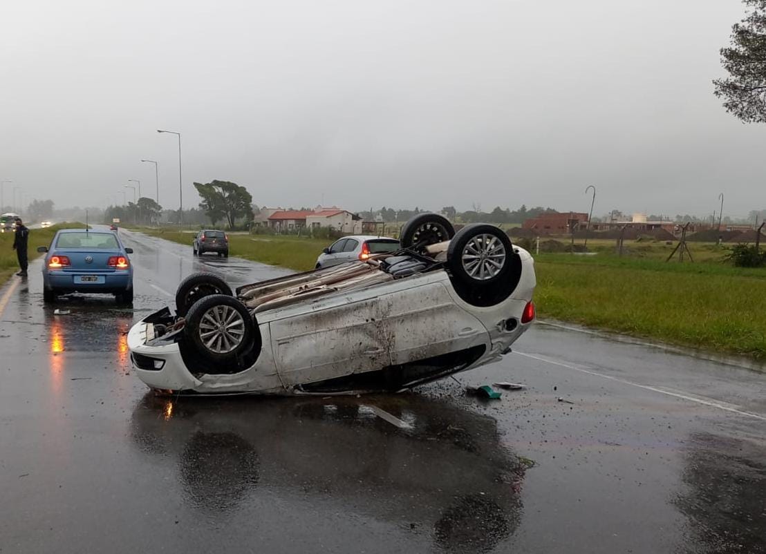 El primero de ellos refiere a que un hombre de 34 años, que se trasladaba en un automóvil Volkswagen Gol Trend, perdió el control del mismo a razón de las condiciones meteorológicas, cruzándose de carril, volcando el rodado y quedando con las cuatro ruedas hacia arriba.