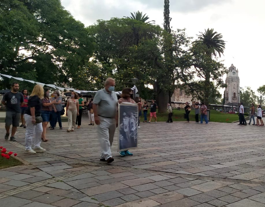Acto seguido, se realizó la marcha en círculo en el centro de la Plaza con familiares y la ex presa política Margarita Zeniquel en el frente, portando una imagen de «Emi» y «Charo«.