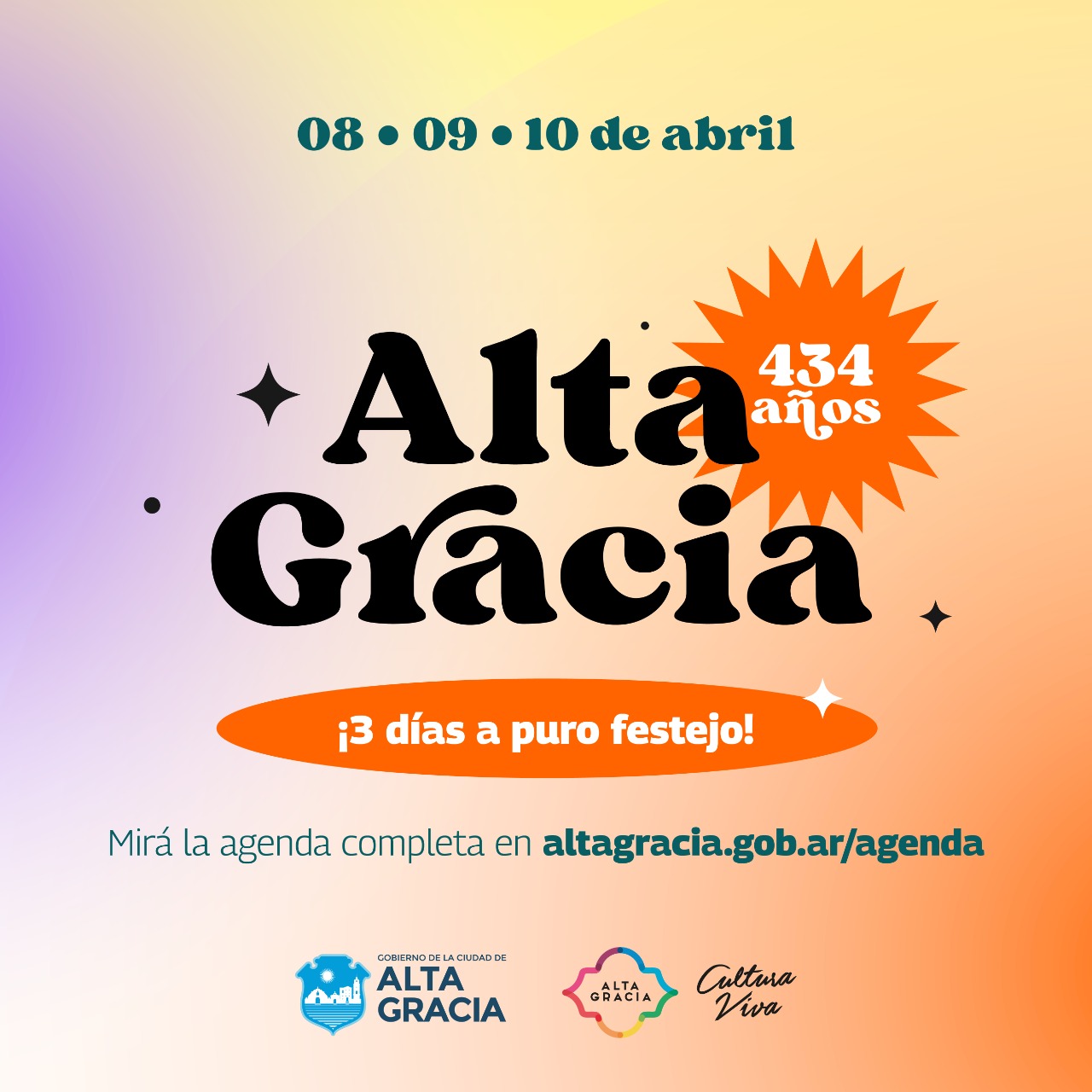 El próximo viernes 8 de abril, Alta Gracia celebra su 434° aniversario y, para festejarlo, desde el Municipio local prepararon distintas actividades para compartir con vecinos y vecinas, durante todo el mes.
