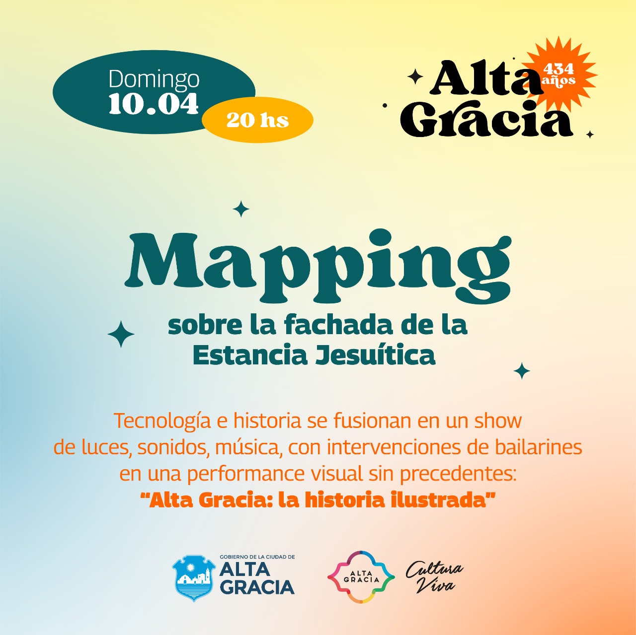 - Tecnología e historia se fusionan en un show de luces, sonidos, música, con intervenciones de bailarines en una performance visual sin precedentes: “Alta Gracia: la historia ilustrada”.