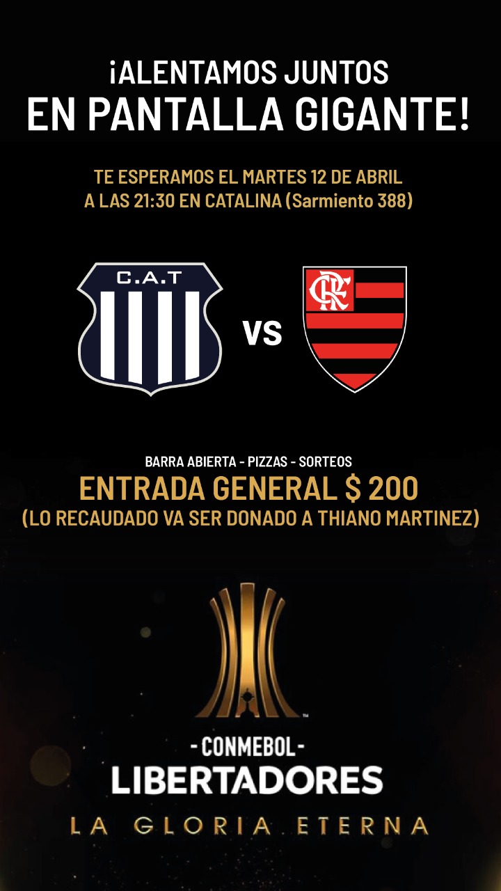 “Este martes Talleres 🔵⚪🔵 enfrenta al poderoso Flamengo 🇧🇷 en Rio de Janeiro y vos no te lo podes perder. Vivamos el partido todos los matadores juntos en CATALINA. Sarmiento 388”; publicaron en las redes sociales de la filial.