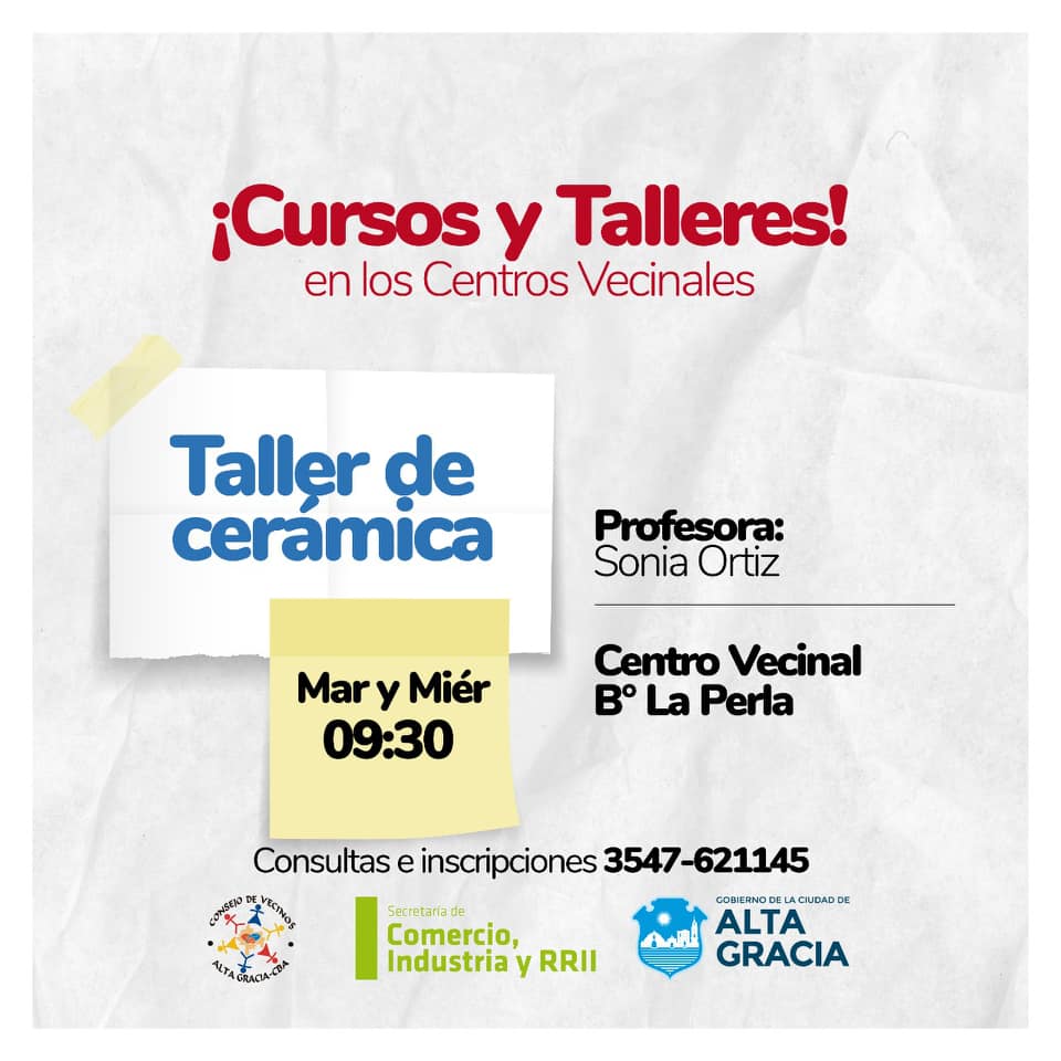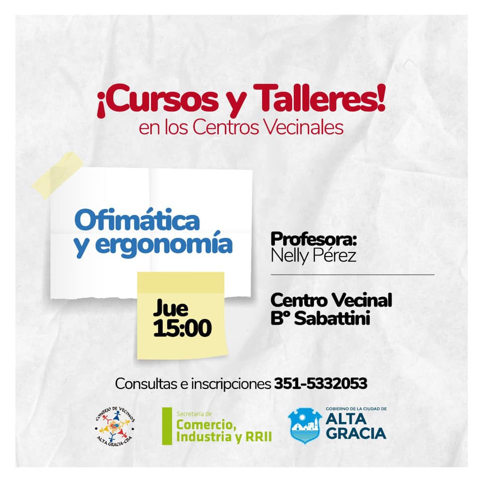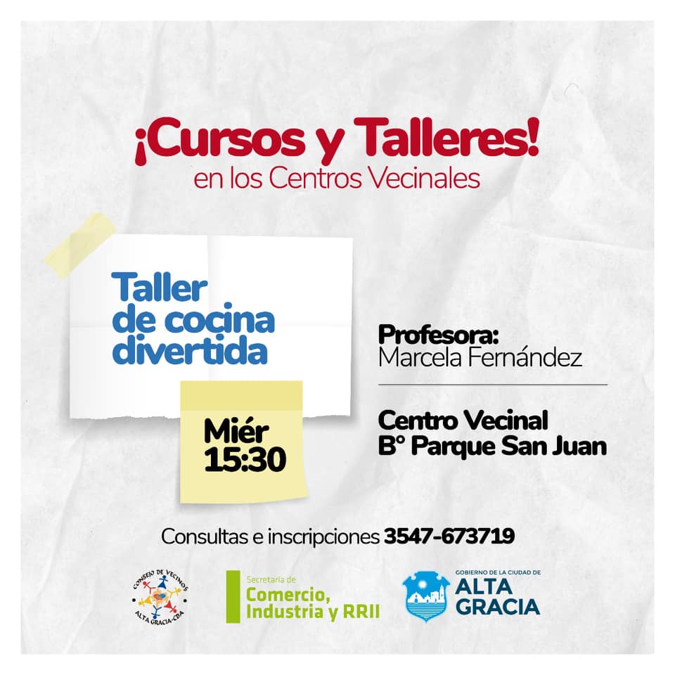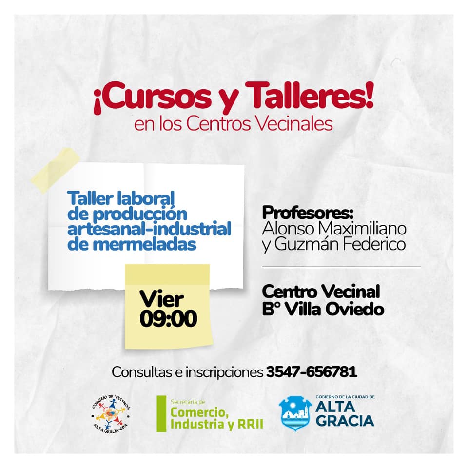 La Secretaría de Comercio, Industria y Relaciones Institucionales, del Municipio de Alta Gracia, informa que ya están abiertas las inscripciones de los Talleres Municipales, en los diferentes centros vecinales de la ciudad.