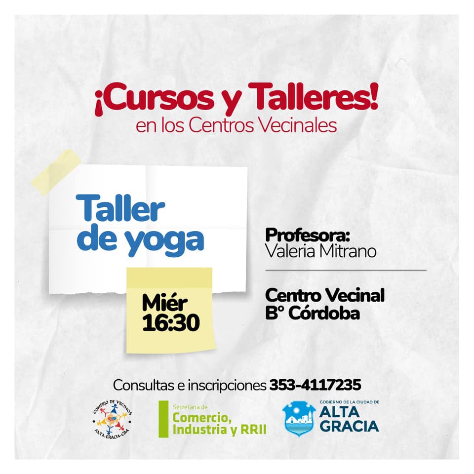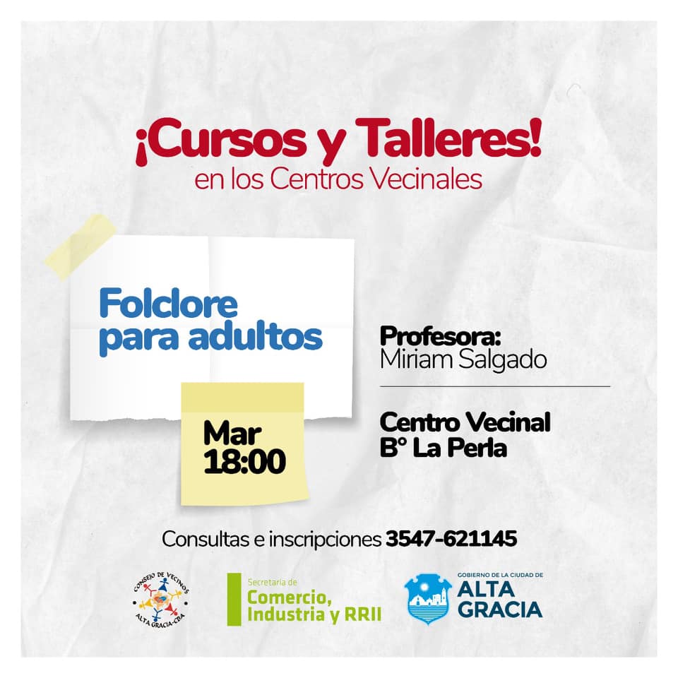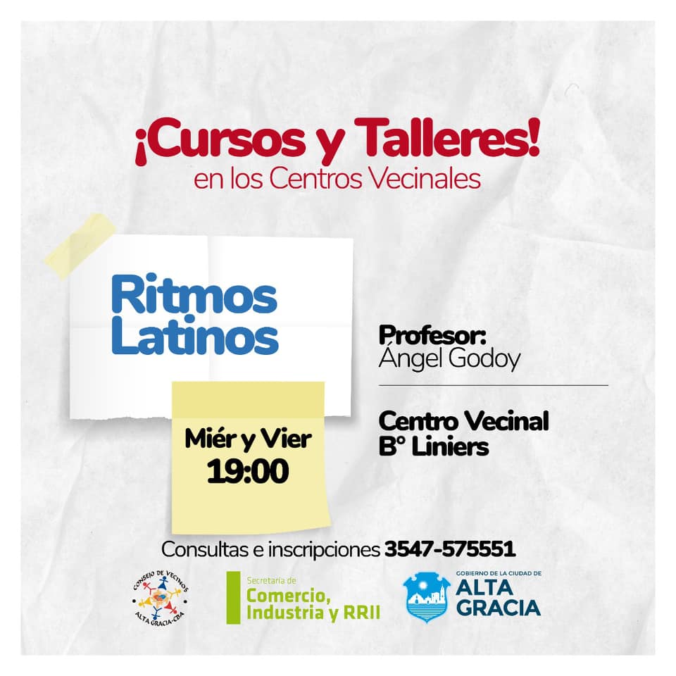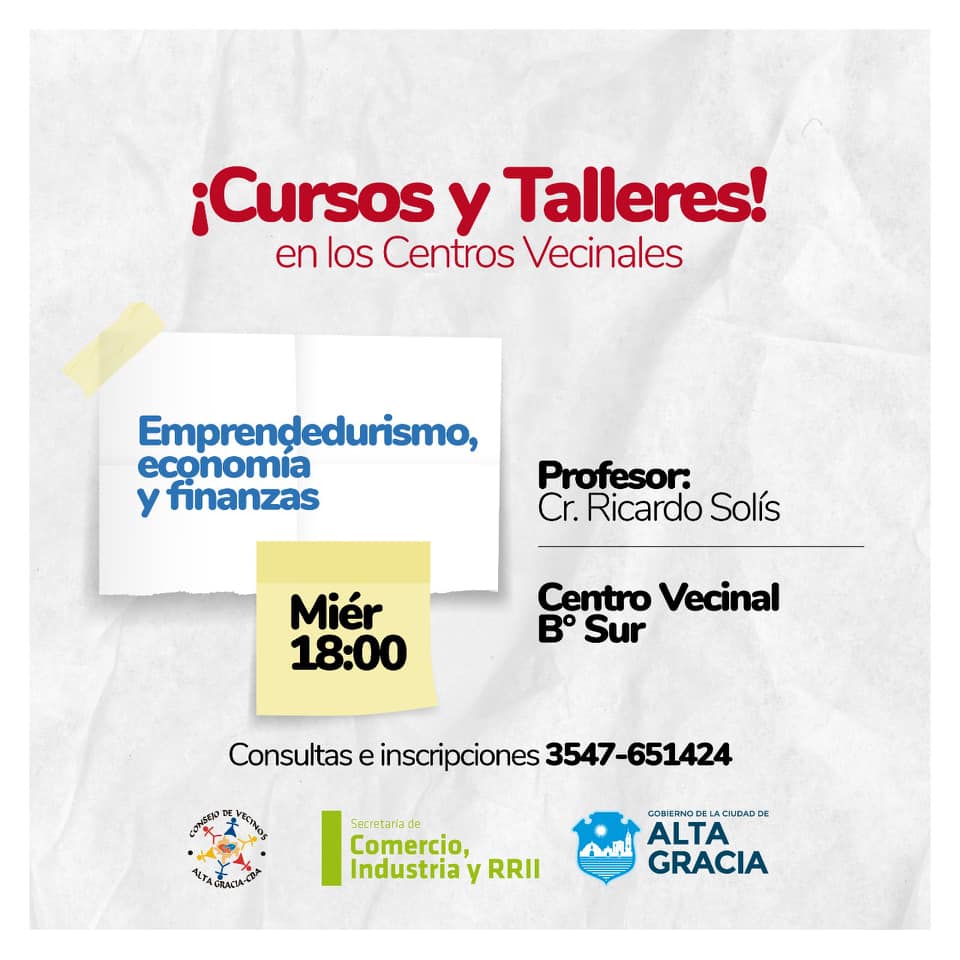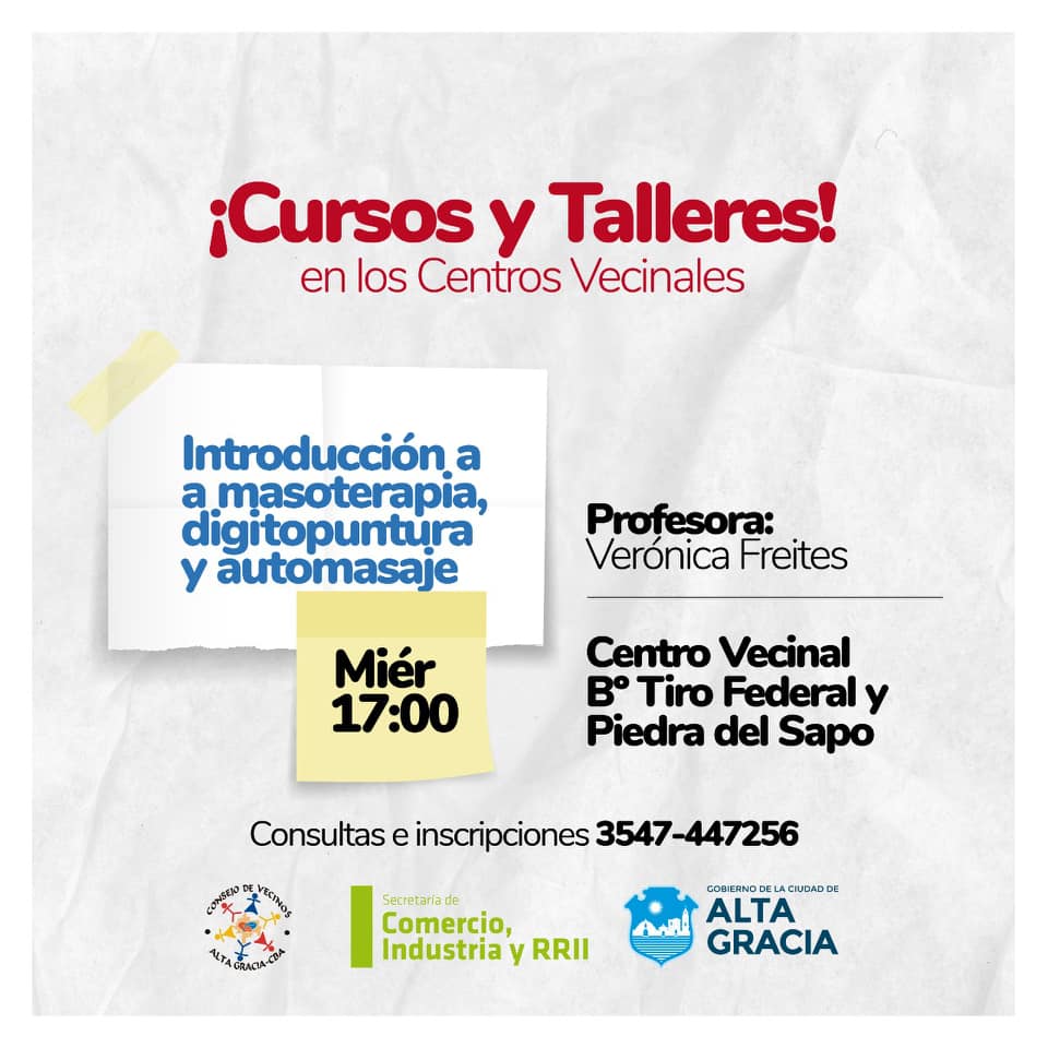 La Secretaría de Comercio, Industria y Relaciones Institucionales, del Municipio de Alta Gracia, informa que ya están abiertas las inscripciones de los Talleres Municipales, en los diferentes centros vecinales de la ciudad.