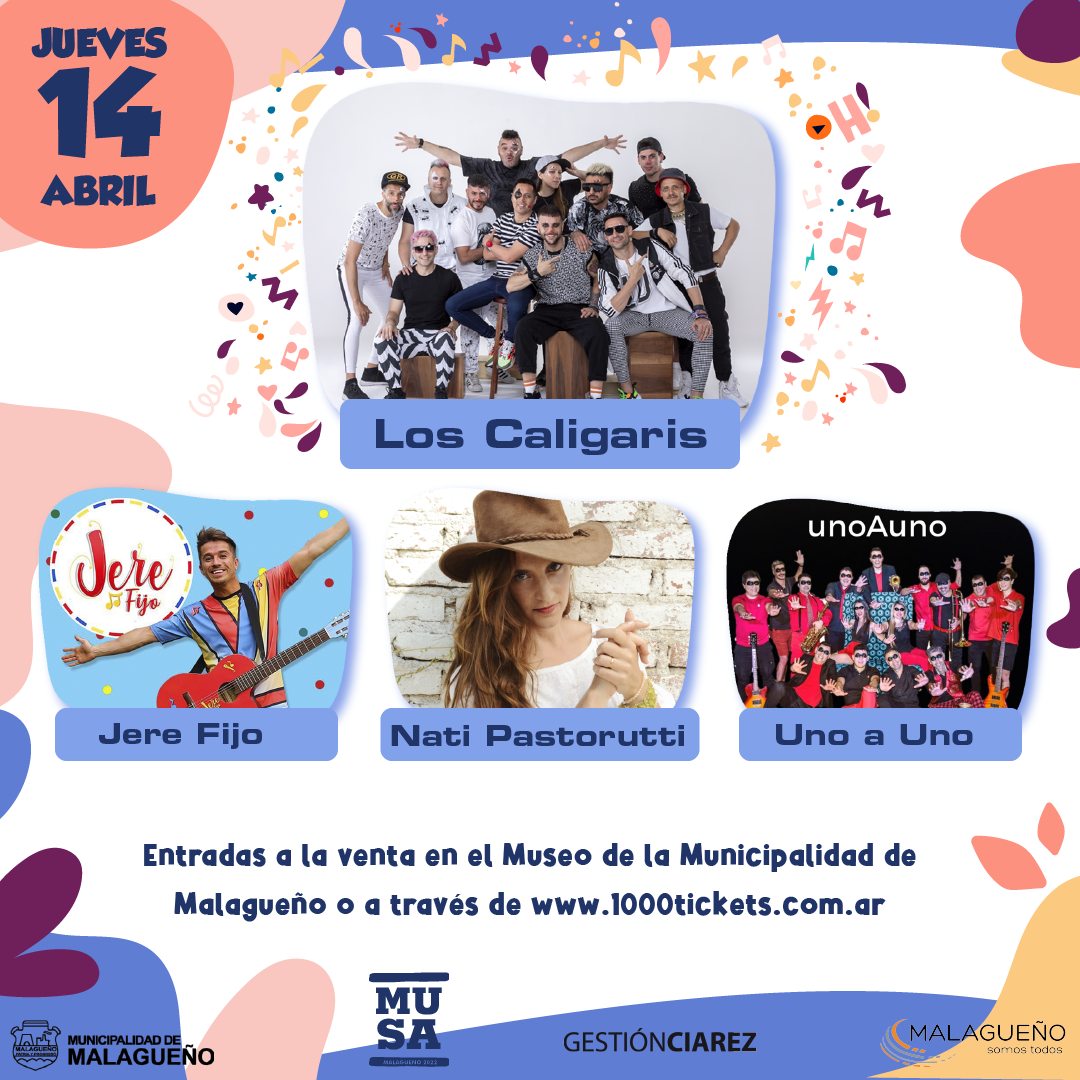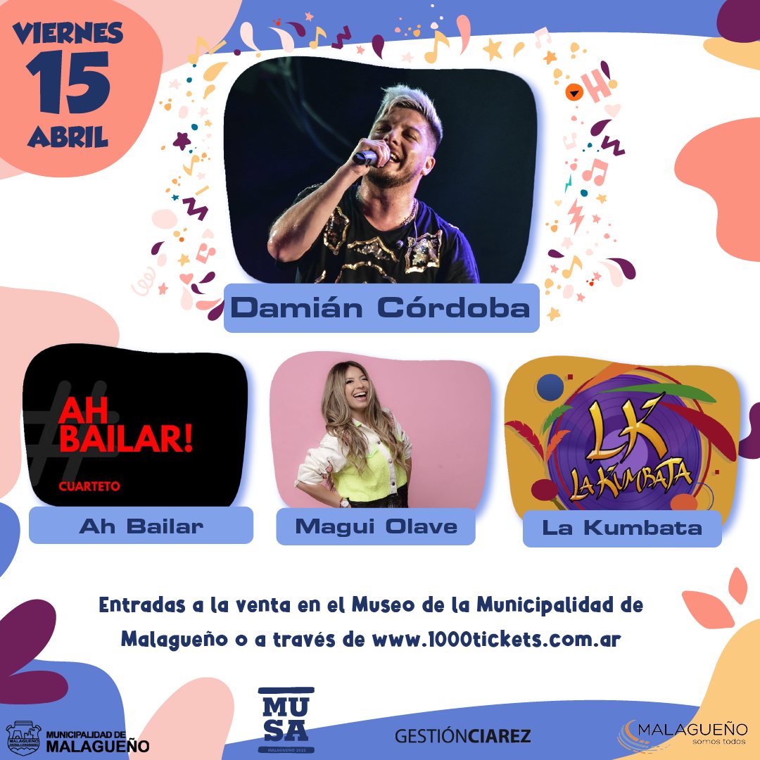Desde el día jueves 14 al sábado 16 de abril de 2022, llega Musa a Malagueño con una grilla espectacular para toda la familia.