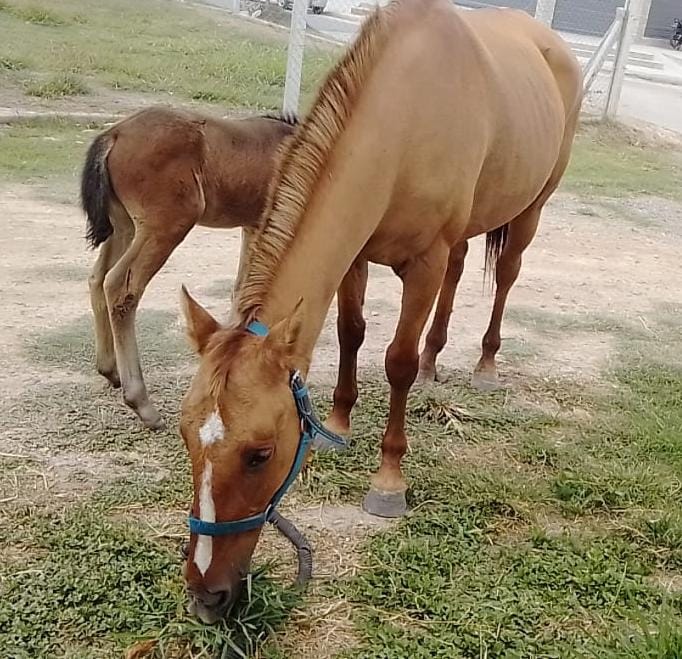 No obstante, el «dato de color» fue que el equino en cuestión ya había dado a luz a un potrillo hace pocos días, encontrándose ambos animales en buenas condiciones de salud.