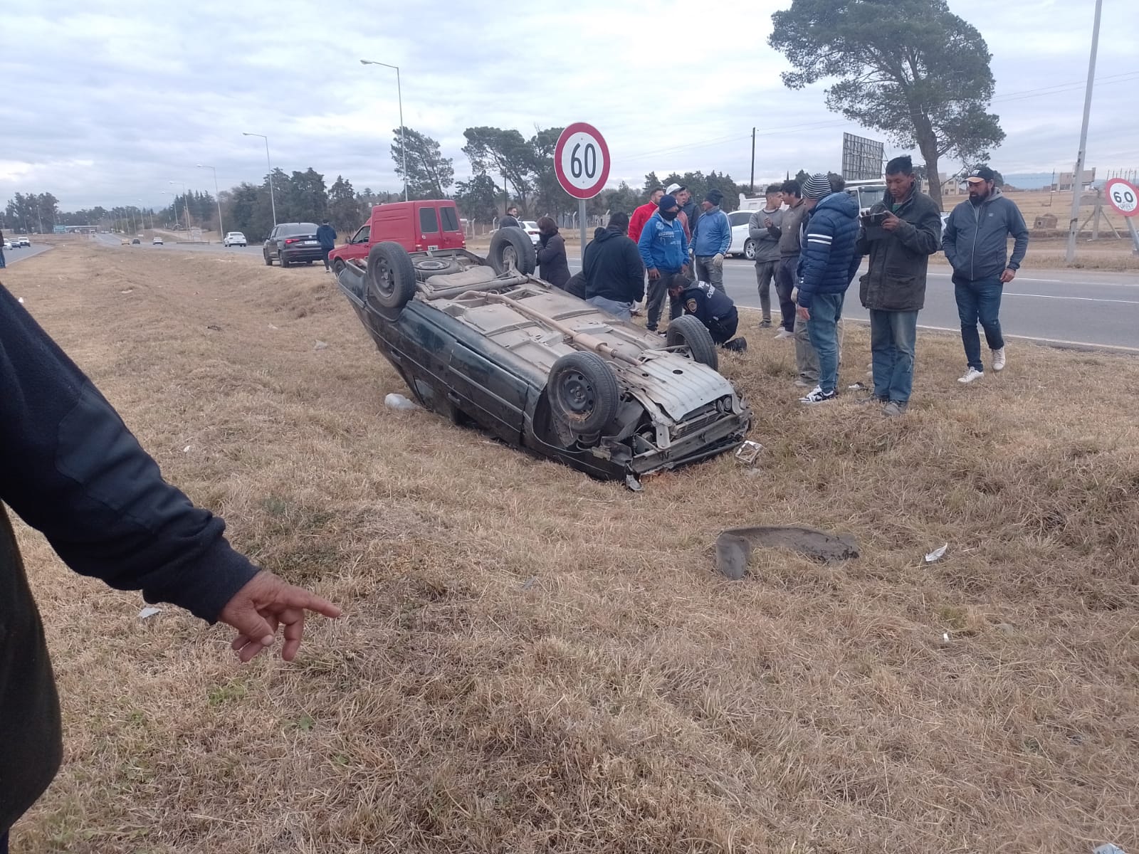Según se constató, se había producido el vuelco de un automóvil sobre el cantero central, tras la pérdida de control de su conductora, una mujer de 30 años.