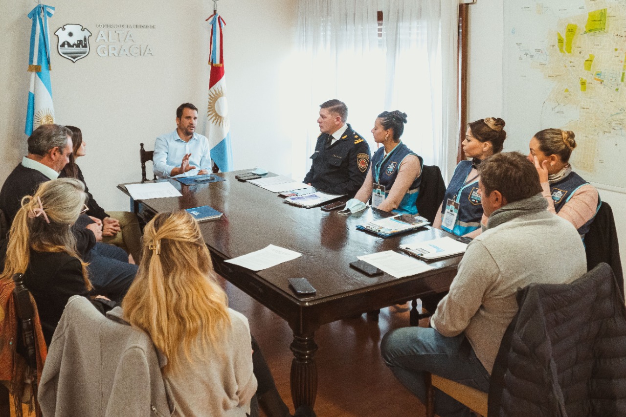 De la reunión participaron el Comisario de la Departamental Santa María Diego Cambronero, el Secretario de Salud, Desarrollo y Equidad Mariano Agazzi, el Secretario General, Federico Bengolea, la Subsecretaria de Género y Equidad Valeria Amateis, e integrantes de Policía de Proximidad, Área Familia y Punto Mujer.