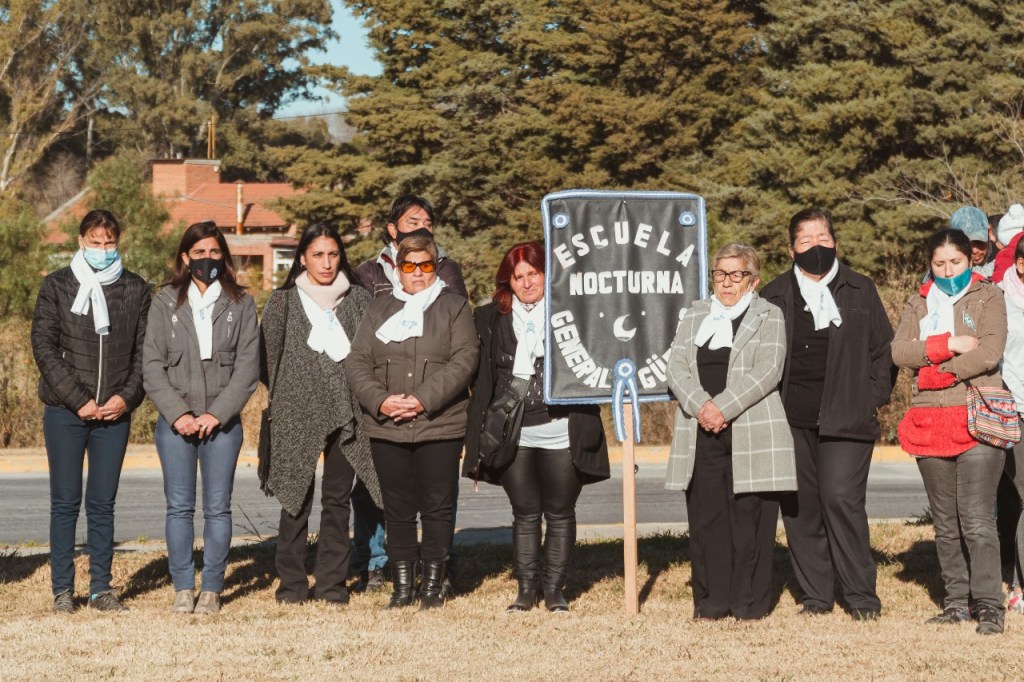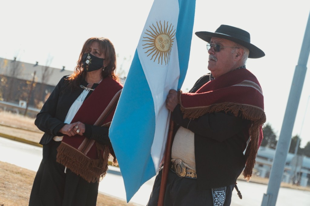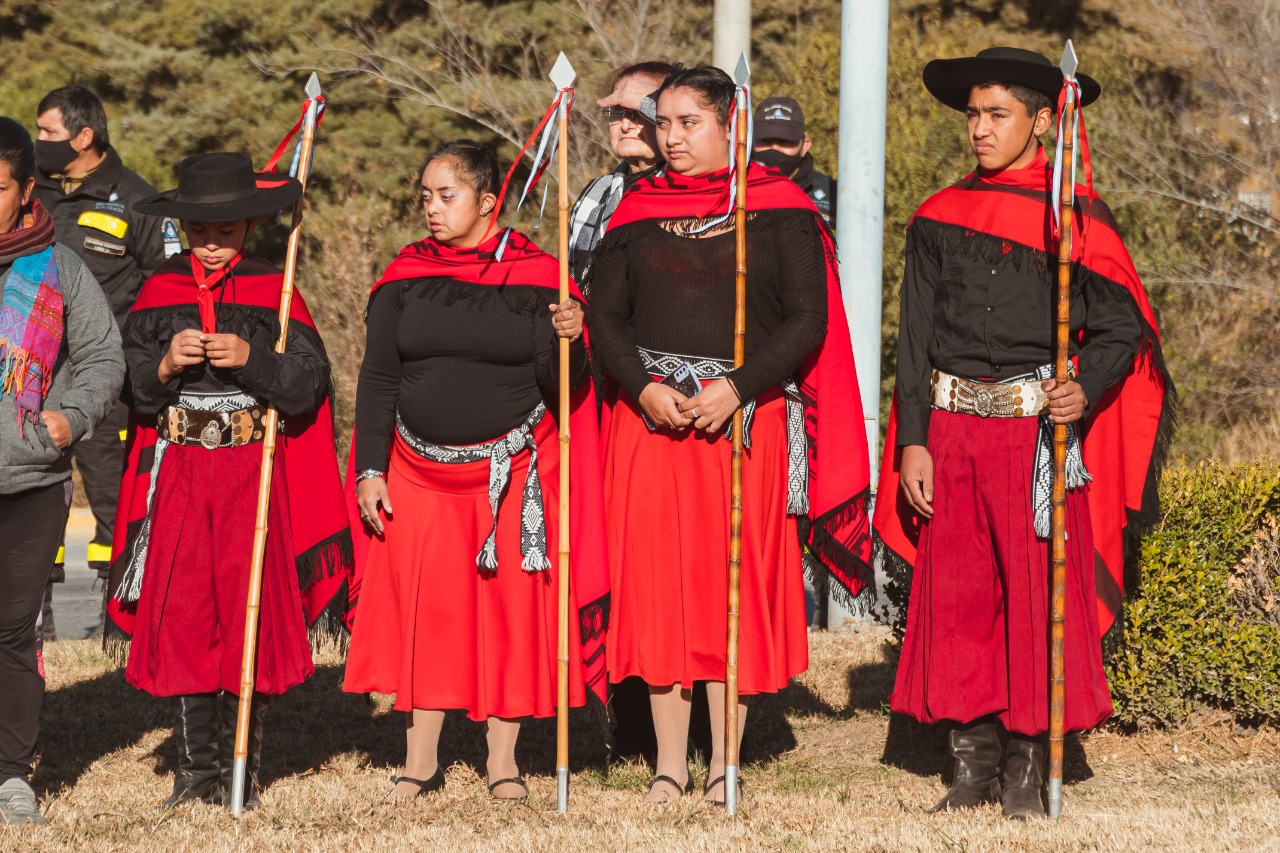 Del acto participaron el Intendente municipal Marcos Torres, la Vice intendenta Cristina Roca, abanderados y escoltas de la Escuela Nocturna Martín Miguel de Güemes, la Agrupación Gaucha Padre Buteler y vecinos y vecinas de la ciudad, entre otros.