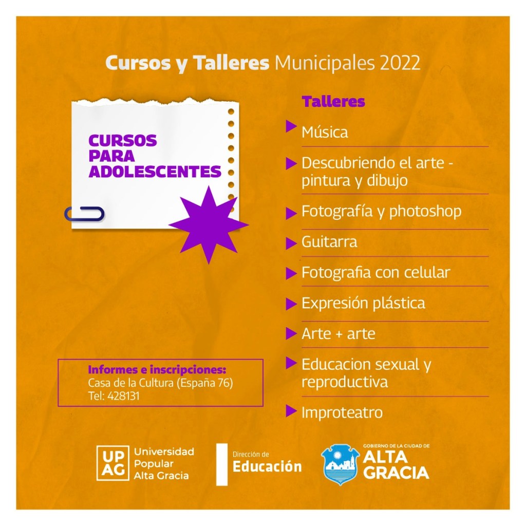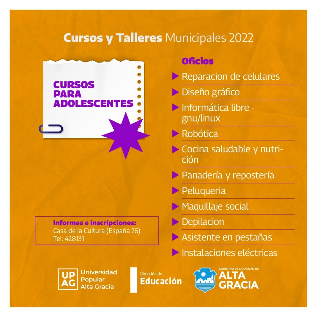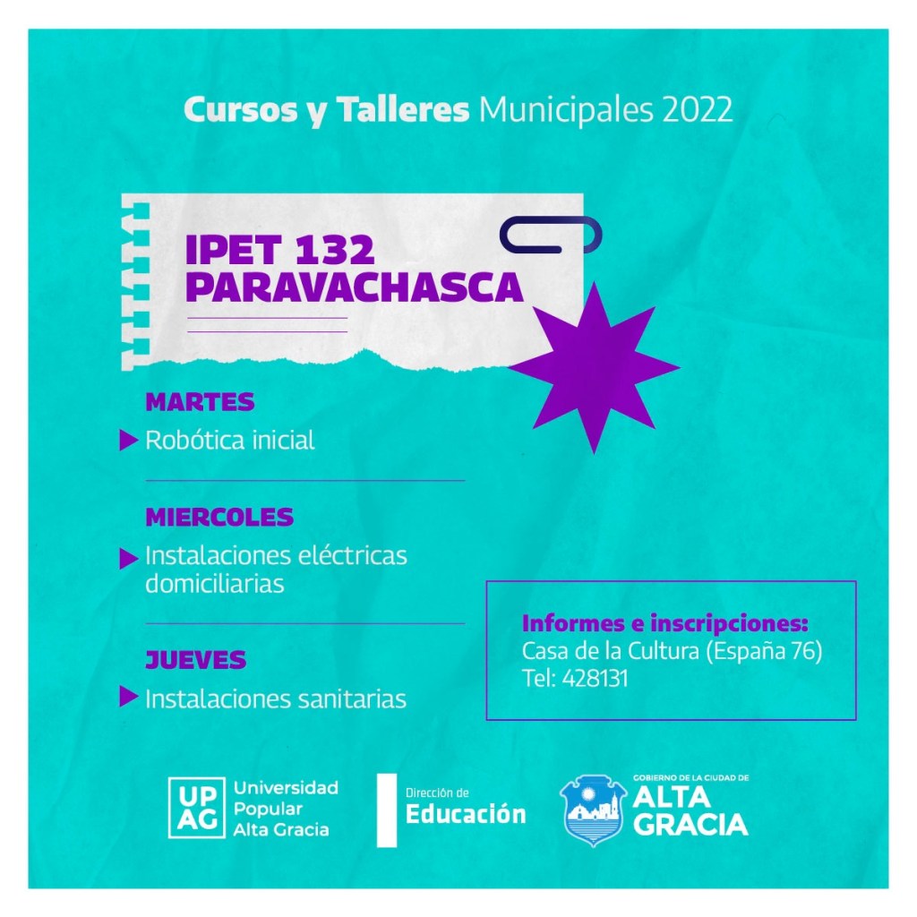La Secretaría de Gestión Pública, a través de la Dirección de Educación, informa que se encuentran abiertas las inscripciones para 94 cursos, talleres, oficios y diplomaturas dictados en diferentes establecimientos municipales y en el IPET 132 “Paravachasca”.