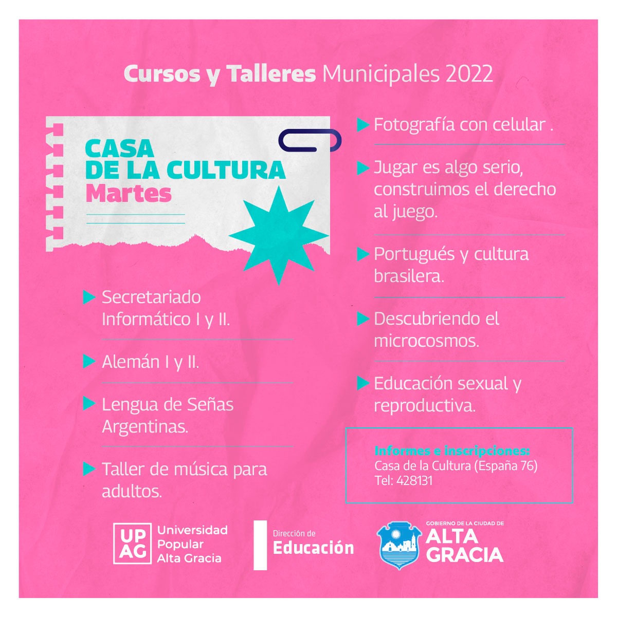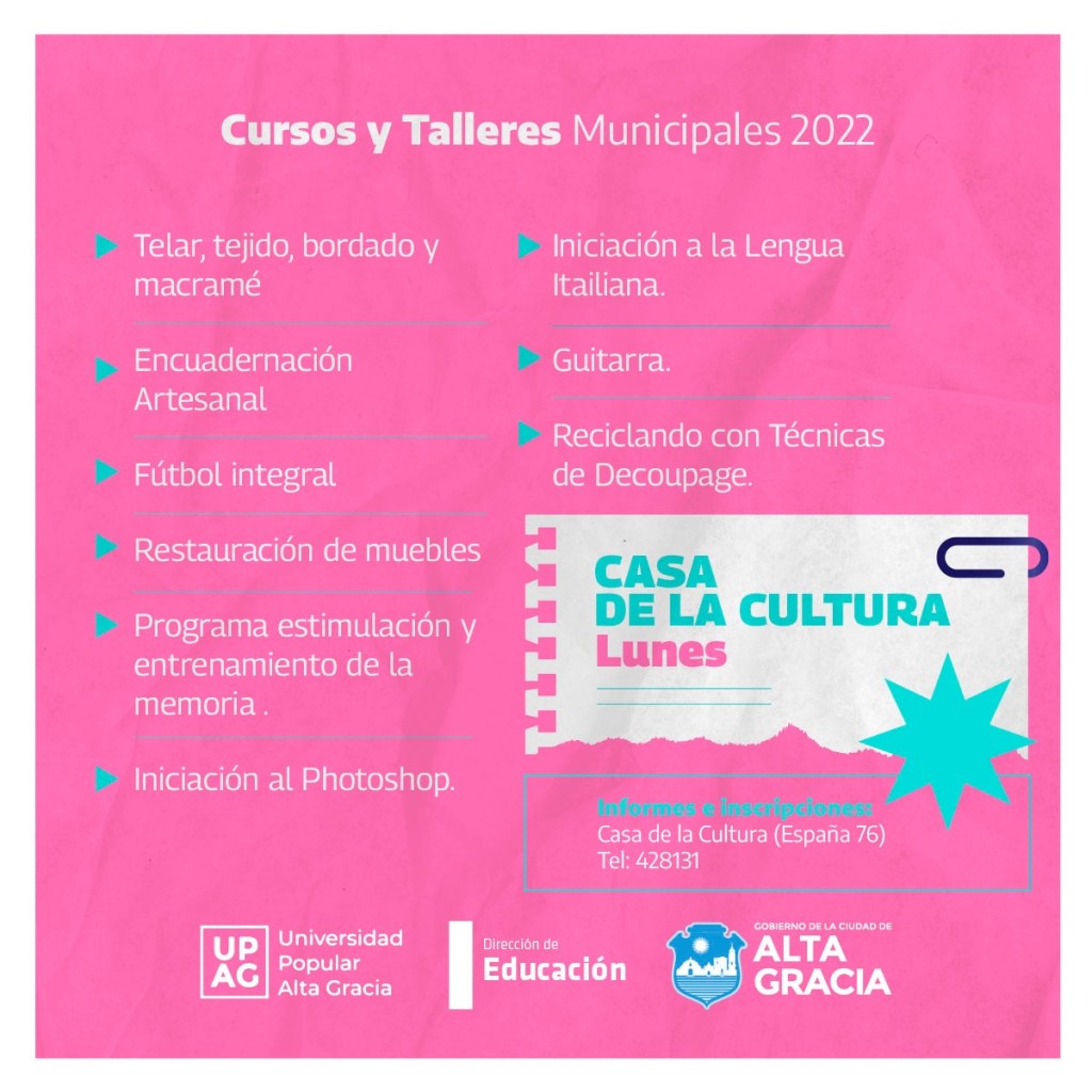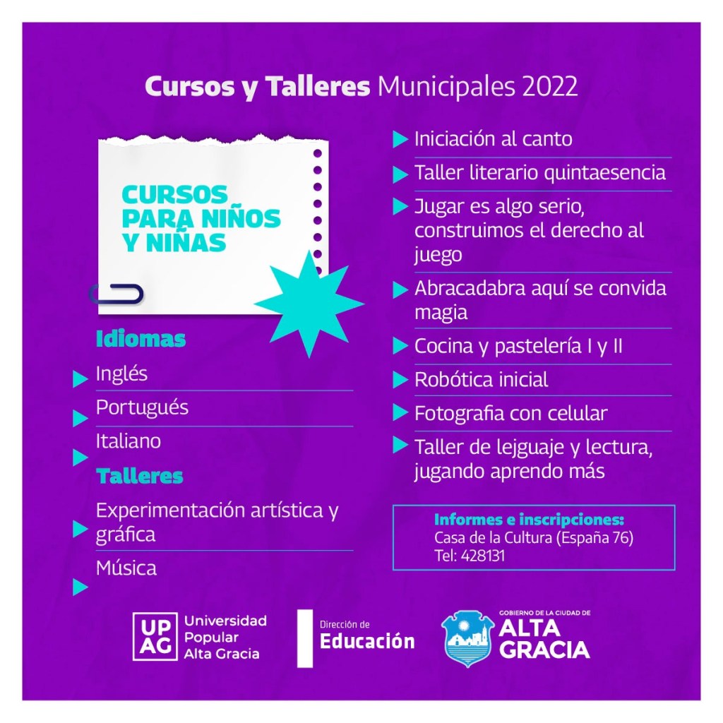 La Secretaría de Gestión Pública, a través de la Dirección de Educación, informa que se encuentran abiertas las inscripciones para 94 cursos, talleres, oficios y diplomaturas dictados en diferentes establecimientos municipales y en el IPET 132 “Paravachasca”.