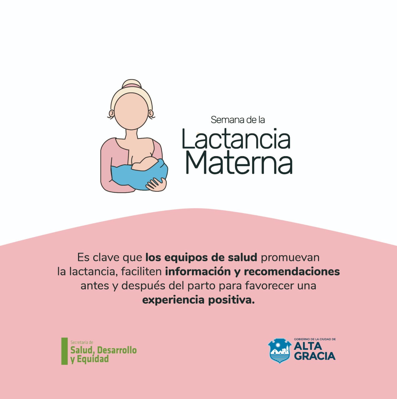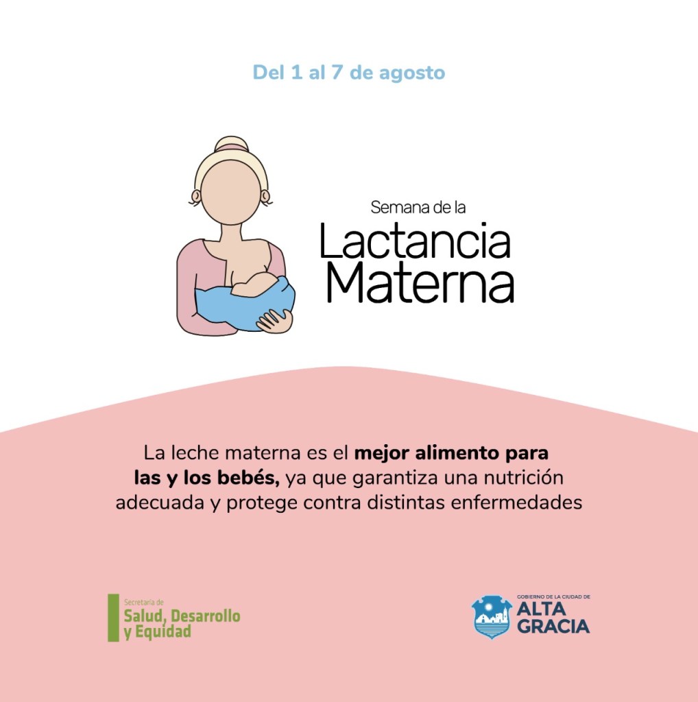En este contexto, la Secretaría de Salud, Desarrollo y Equidad del Gobierno de Alta Gracia comparte información pertinente para promocionar la lactancia, en consonancia con el lema internacional propuesto para este año: “Impulsemos la Lactancia Materna: Apoyando y Educando”.