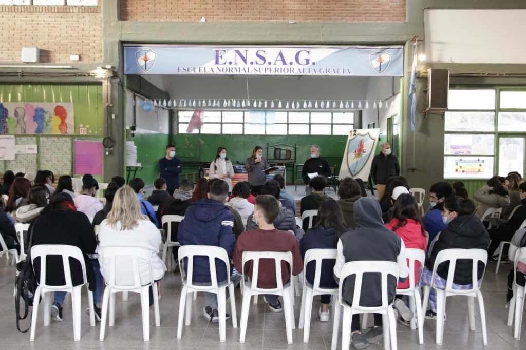 En el marco del Programa Municipal de Prevención de Adicciones, lanzado en el mes de junio, comenzaron los primeros encuentros con alumnos y alumnas del IPET 132 y ENSAG; participando el Director de Políticas Sanitarias Martín Cugno, el Director de Educación Rodrigo Martínez, la Subsecretaria de Equidad y Género Valeria Amateis, el equipo profesional de RAAC Alta Gracia y el Licenciado Roberto Teruel.