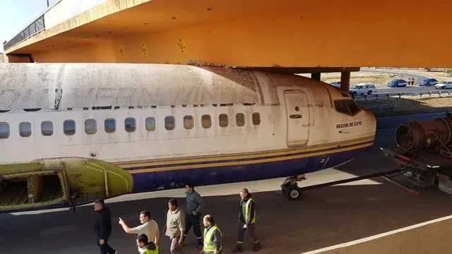 Sin embargo, mientras la aeronave era transportada en un camión y escoltada por un gran operativo de seguridad se quedó atascada en un puente de avenida Circunvalación y avenida Juan B. Justo.