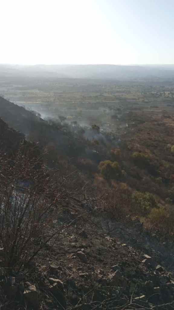 Un panorama parecido se presenta en Las Jarillas, donde no se registra actividad ígnea. El personal desplegado en la zona realizará guardia de cenizas durante la noche.