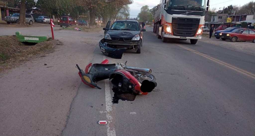 Por otra parte, en Barrio Pellegrini de Alta Gracia, a la altura de calles Sarmiento y Franchini, una motocicleta Motomel en la que se trasladaba una joven de 26 años, colisionó con un automóvil Renault Clio conducido por un hombre de 54 años. El conductor del rodado menor sufrió escoriaciones leves.
