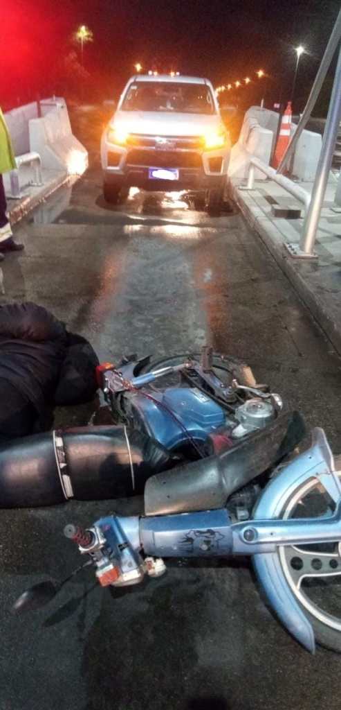 Según se constató, un hombre de 42 años de edad que se conducía en una motocicleta Honda Cub 90 Economy, mientras se encontraba pagando el peaje, fue embestido por una camioneta Chevrolet S10 conducida por un hombre de 68 años.