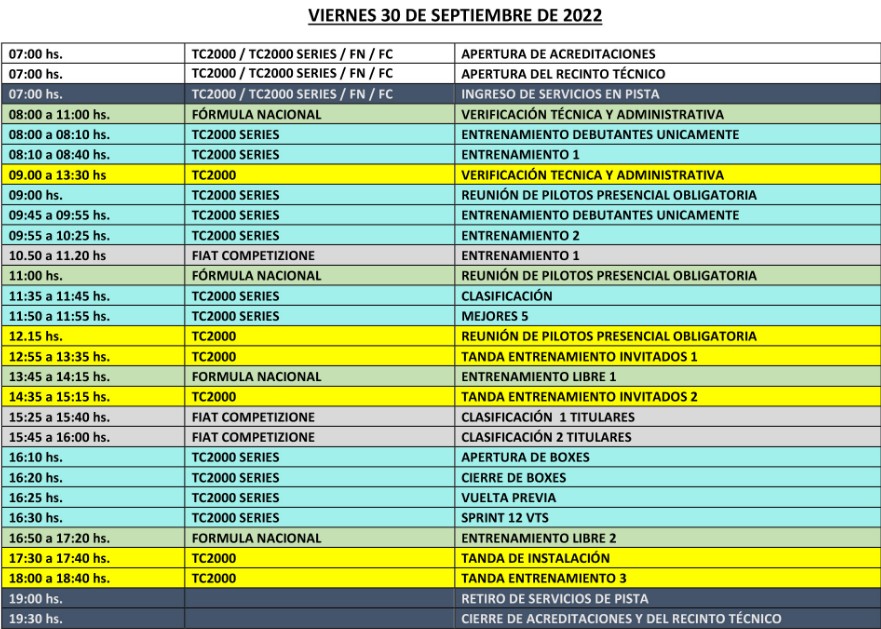 A continuación, se podrá apreciar el cronograma completo para este fin de semana del histórico campeonato automovilístico de la Argentina (cortesía de carburando.com):